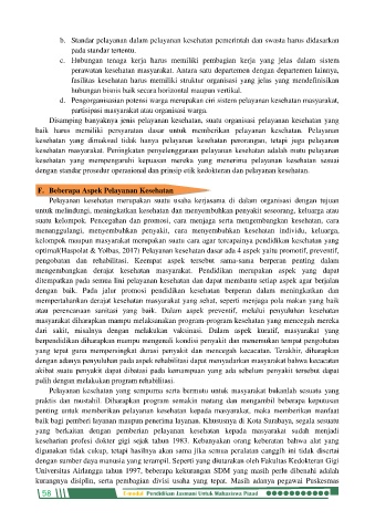 b. Standar pelayanan dalam pelayanan kesehatan pemerintah dan swasta harus didasarkan