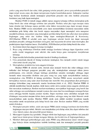 2021)Manfaat PHBS di sekolah yaitu agar lingkungan sekolah bersih dan dapat mencegah