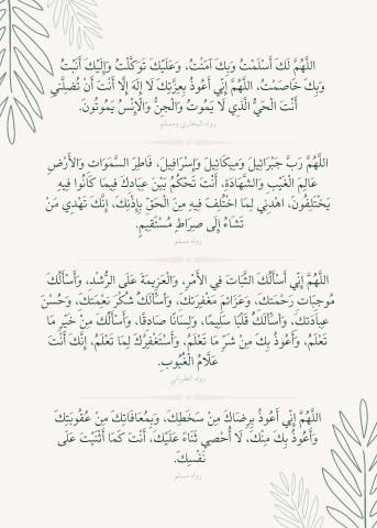 اﻟ ﱠﻠﻬﻢ َﻟ َﻚ اﺳ َﻠﻤﺖ و ِﺑ َﻚ آﻣﻨْﺖ ،وﻋﻠَﻴ َﻚ َﺗﻮﻛﻠْﺖ واﻟَﻴ َﻚ ا َﻧﺒﺖ