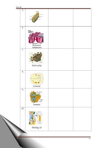 Kelas XI 5. Ribosom 6. Retikulum endoplasma 7. Badan golgi 8. Lisosom 9. Sentriol 10. Dinding sel 16