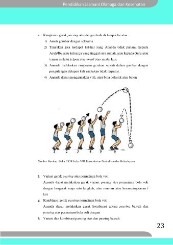 e. Rangkaian gerak passing atas dengan bola di lempar ke atas