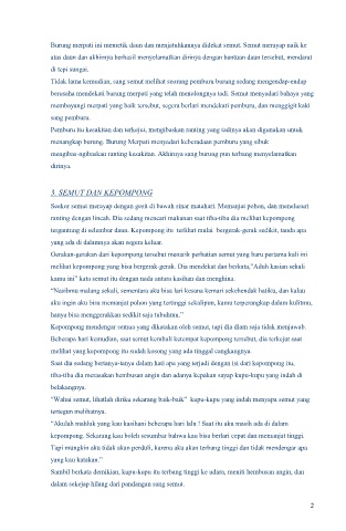 mengibas-ngibaskan ranting kesakitan. Akhirnya sang burung pun terbang menyelamatkan