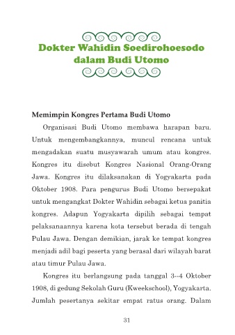 Memimpin Kongres Pertama Budi Utomo