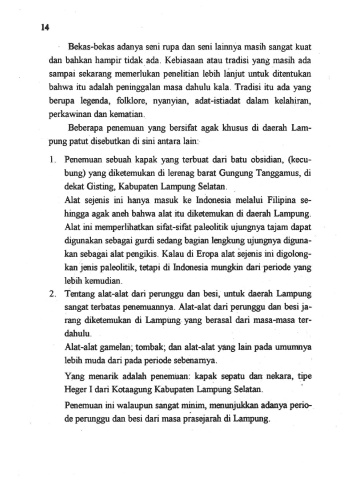 2. Tentang alat-alat dari perunggu dan besi, untuk daerah Larnpung