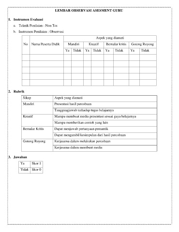 Gotong Royong        Kerjasama dalam melakukan percobaan