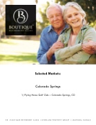 Selected Markets: Colorado Springs 1) Flying Horse Golf Club – Colorado Springs, CO 14 | BOUTIQUE RETIREMENT CLUBS | OVERLAND PROPERTY GROUP | LEAWOOD, KANSAS