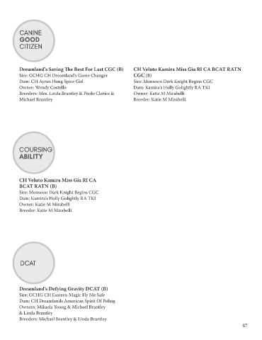 Dreamland's Saving The Best For Last CGC (B) CH Veluto Kamira Miss Gia RI CA BCAT RATN