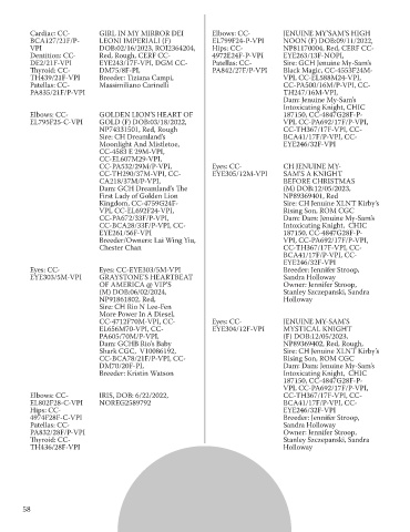 DE2/21F-VPI EYE243/17F-VPI, DGM CC- Patellas: CC- Sire: GCH Jenuine My-Sam’s
