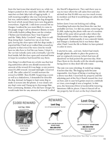 everywhere. Night fell. I still drove around but no Before dawn I was out looking and calling.