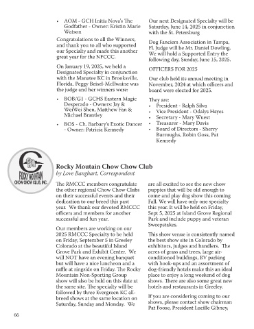 • BOS - Ch. Barbary’s Exotic Dancer • Treasurer - Mary Davis