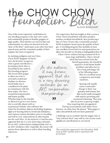any breeding program is the dam who easily Chow Chow brood bitch will often produce