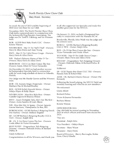the Jacksonville Dog Fanciers Association. The On January 21, 2024, we held a Designated Spe-