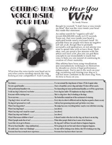 What if that mean exhibitor is here? ............................................. It doesn’t matter who else is in the ring–my focus is on my dog.