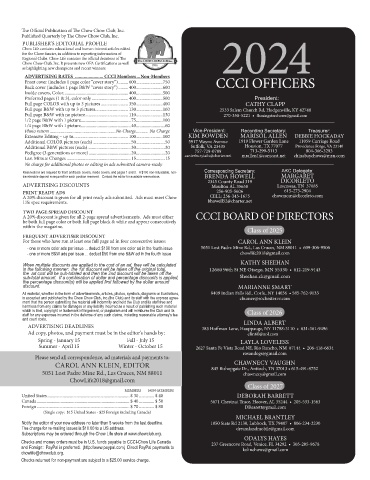 A 20% discount is given for all 2-page spread advertisements. Ads must either CCCI BOARD OF DIRECTORS
