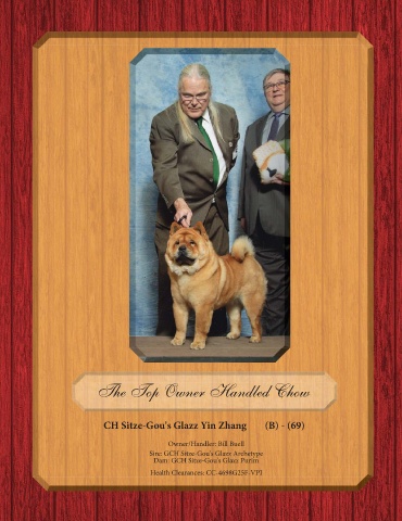The Top Owner Handled Chow CH Sitze-Gou's Glazz Yin Zhang (B) - (69) Owner/Handler: Bill Buell Sire: GCH Sitze-Gou's Glazz Archetype Dam: GCH Sitze-Gou's Glazz Purim Health Clearances: CC-4698G25F-VPI