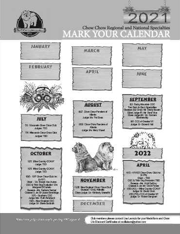 Note: Some judges listed may be pending AKC approval . Club members please contact Lisa Leonzio for your Medallions and Chow