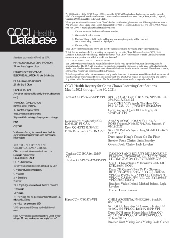 all CCCI recognized health certifications. These certifications include: OFA (Hip, Elbow, Patella, Thyroid,