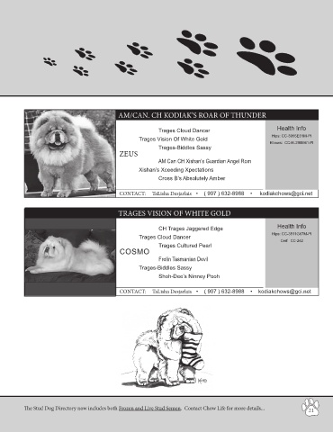 The Stud Dog Directory now includes both Frozen and Live Stud Semen. Contact Chow Life for more details... 21