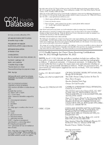24 Months & Older CCCI Health Registry for Chow Chows Receiving Certifications