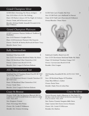 Dam: CH Redcloud Uhai Chatterbox CGC Owner: Paula Titon