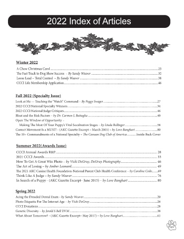 2022 CCCI National Specialty Winners .......................................................................................................................34