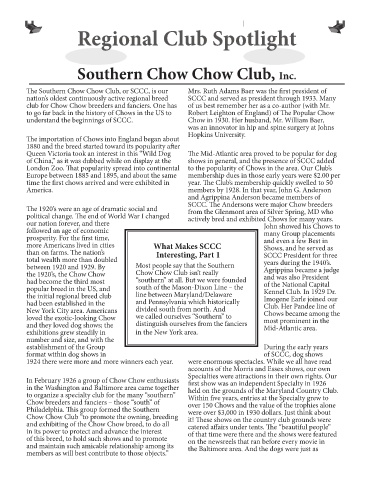 The Southern Chow Chow Club, or SCCC, is our Mrs. Ruth Adams Baer was the first president of