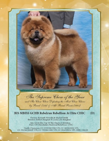 Dam: CH Chowlamars Redcloud Rebellious CHIC