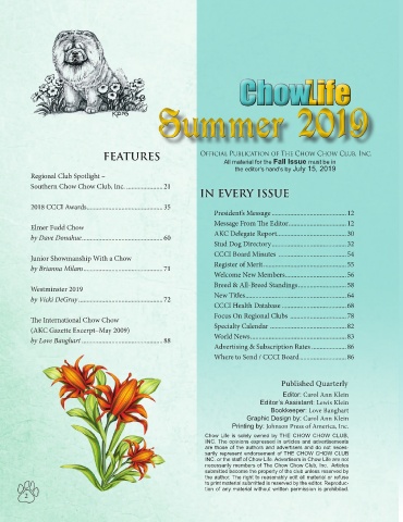 FEATURES Official Publication of The Chow Chow Club, Inc.