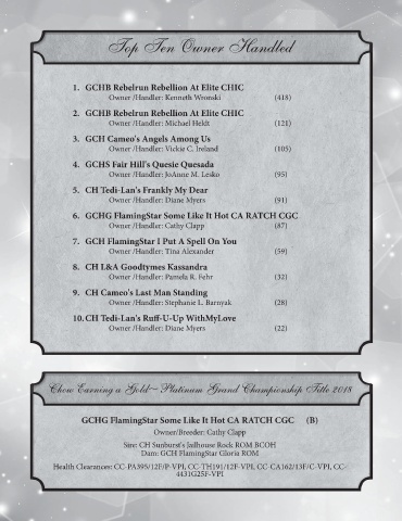 Chow Earning a Gold~Platinum Grand Championship Title 2018