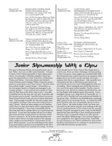 floor when required. It can be confusing for the Chow handlers in the future as we continue to see juniors suc-