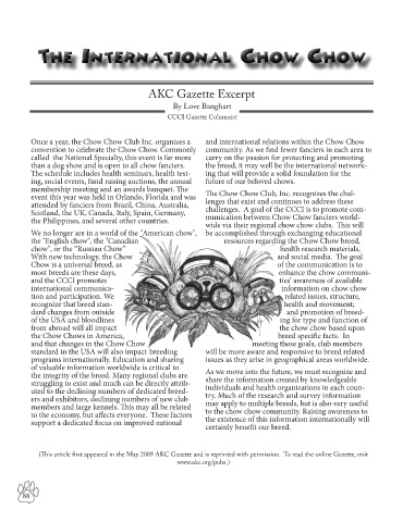 membership meeting and an awards banquet. The The Chow Chow Club, Inc. recognizes the chal-