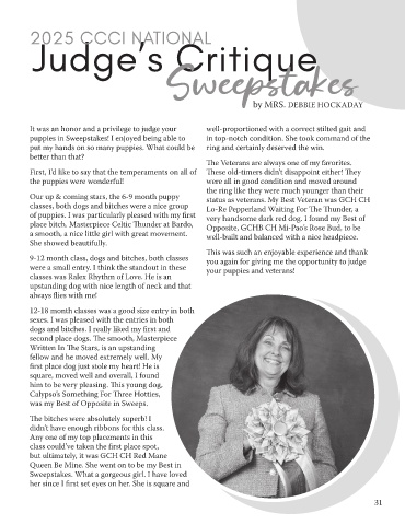 puppies in Sweepstakes! I enjoyed being able to      in top-notch condition. She took command of the