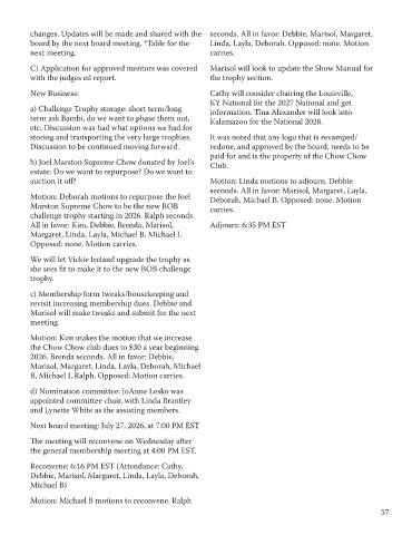 auction it off? Motion: Linda motions to adjourn. Debbie