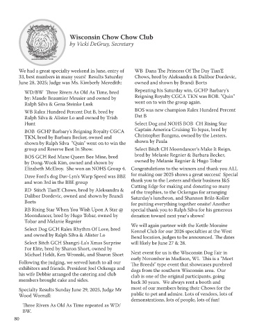 Specialty Results Sunday June 29, 2025, Judge Mr most of our members bring their Chows for the