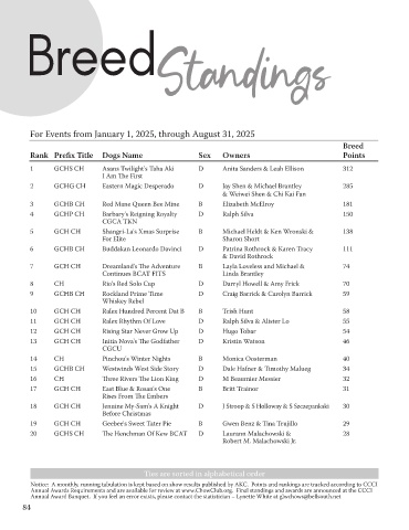 Notice: A monthly, running tabulation is kept based on show results published by AKC. Points and rankings are tracked according to CCCI