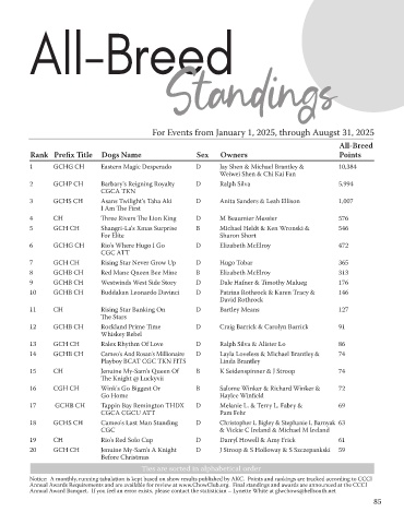 Notice: A monthly, running tabulation is kept based on show results published by AKC. Points and rankings are tracked according to CCCI