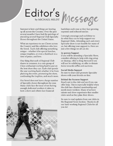 attending several Regional Club Specialty   I strongly enourage each exhibitor to