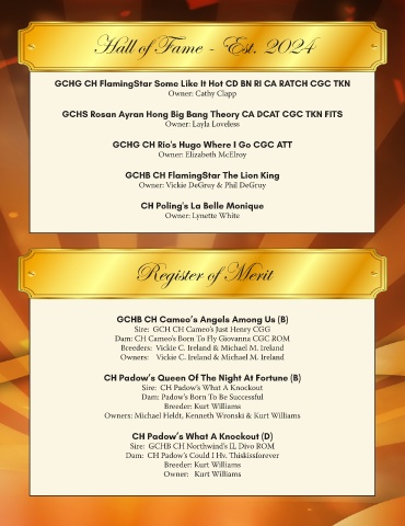 Dam: CH Cameo’s Born To Fly Giovanna CGC ROM