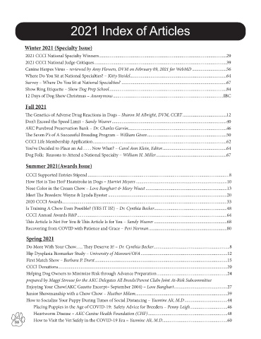 2021 CCCI National Specialty Winners .......................................................................................................................29