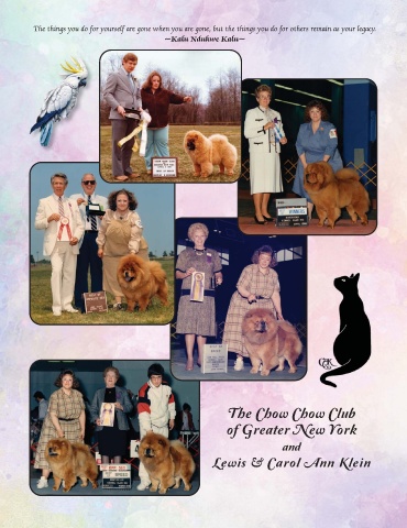 The things you do for yourself are gone when you are gone, but the things you do for others remain as your legacy. ~Kalu Ndukwe Kalu~ The Chow Chow Club of Greater New York and Lewis & Carol Ann Klein