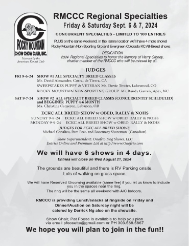 SAT 9-7-24 SHOW #2 ALL SPECIALTY BREED CLASSES (CONCURRENTLY SCHEDULED)