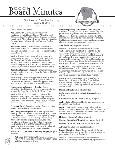 meeting. AKC info was sent out to the board for review. and has not had a response so far.