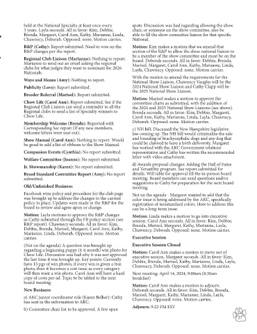 Breed Standard Committee Report (Amy): No report details. Will table for approval till the in-person board