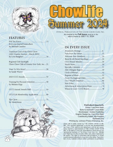 Chow Chow Club of Greater New York, Inc. ...21 World News ..........................................................30