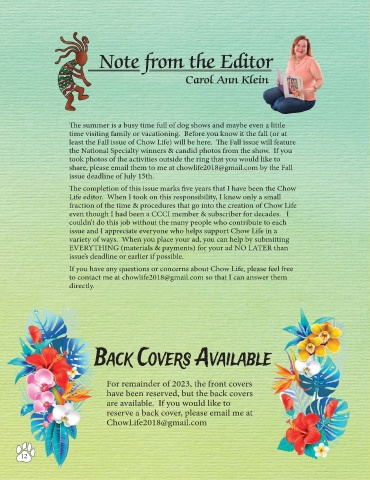 least the Fall issue of Chow Life) will be here. The Fall issue will feature