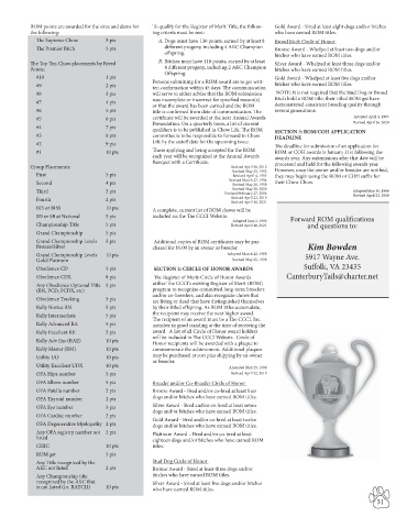 ROM points are awarded for the sires and dams for To qualify for the Register of Merit Title, the follow- Gold Award - Sired at least eight dogs and/or bitches