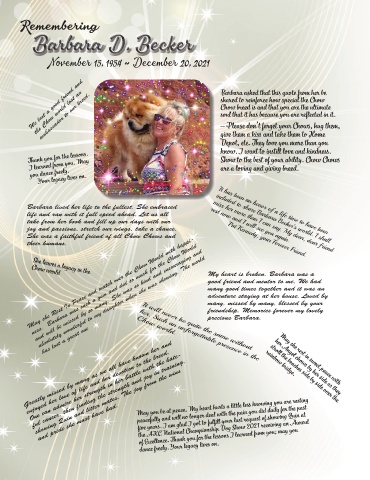 Barbara lived her life to the fullest. She embraced It has been an honor of a life time to have been