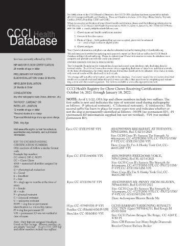 Per 2004 action of the CCCI Board of Directors, the CCCI’s OFA database has been expanded to include