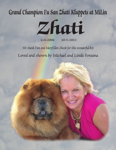 Grand Champion Fu San Zhati Kluppets at MiLin Zhati 6-4-2006 10-5-2021 We thank Dan and MaryEllen Shook for this wonderful boy Loved and shown by Michael and Linda Fontana