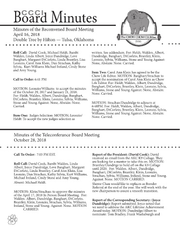 Call to Order: 6:41 PM accept the nomination of Carol Ann Klein as Chow
